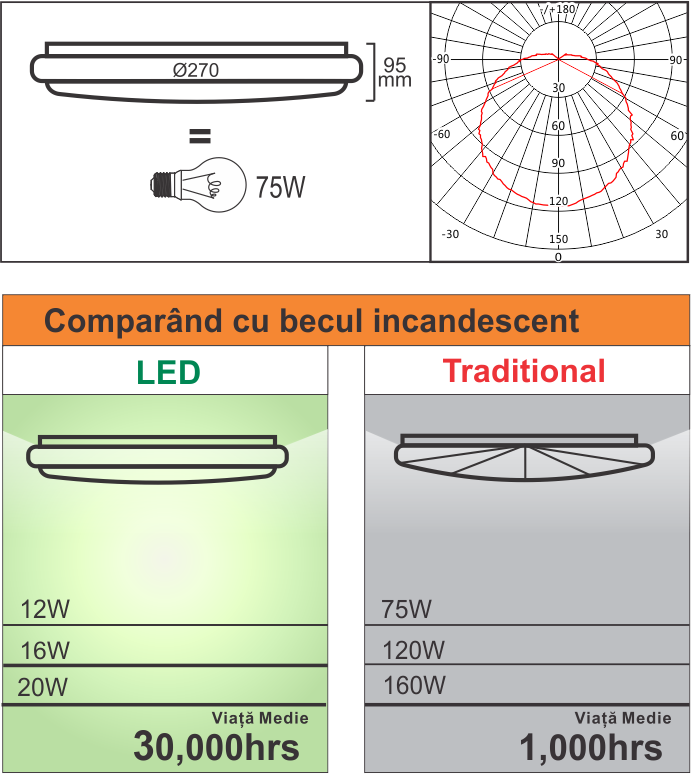 Economisiți energie și oferiți iluminare eficientă si Instalare simplă: Instalare usoara aplicati precum, scară bloc, hol, subsol, garaj, baie, dulap, și multe altele.