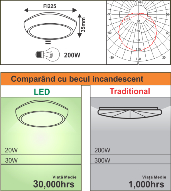 Avantaje: Nu pulseaza. Stabilitatea sursei de lumină si aprinderea instantanee este ideala pentru aplicații comerciale sau rezidențiale în sufragerie, dormitor, baie, scară, birou etc.